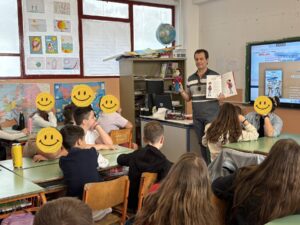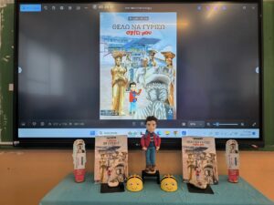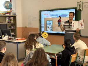 A big surprise awaited our sixth graders today. The classroom door opened, and Zisis, the hero of the book “I Was born in Greece” was standing in front of them. The children, with eyes full of curiosity, dropped their bags and approached.