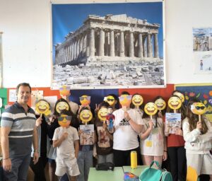 To thank him, the children created emojis reflecting their feelings for Zisis and took photos with him, creating a moment they would remember for a long time.